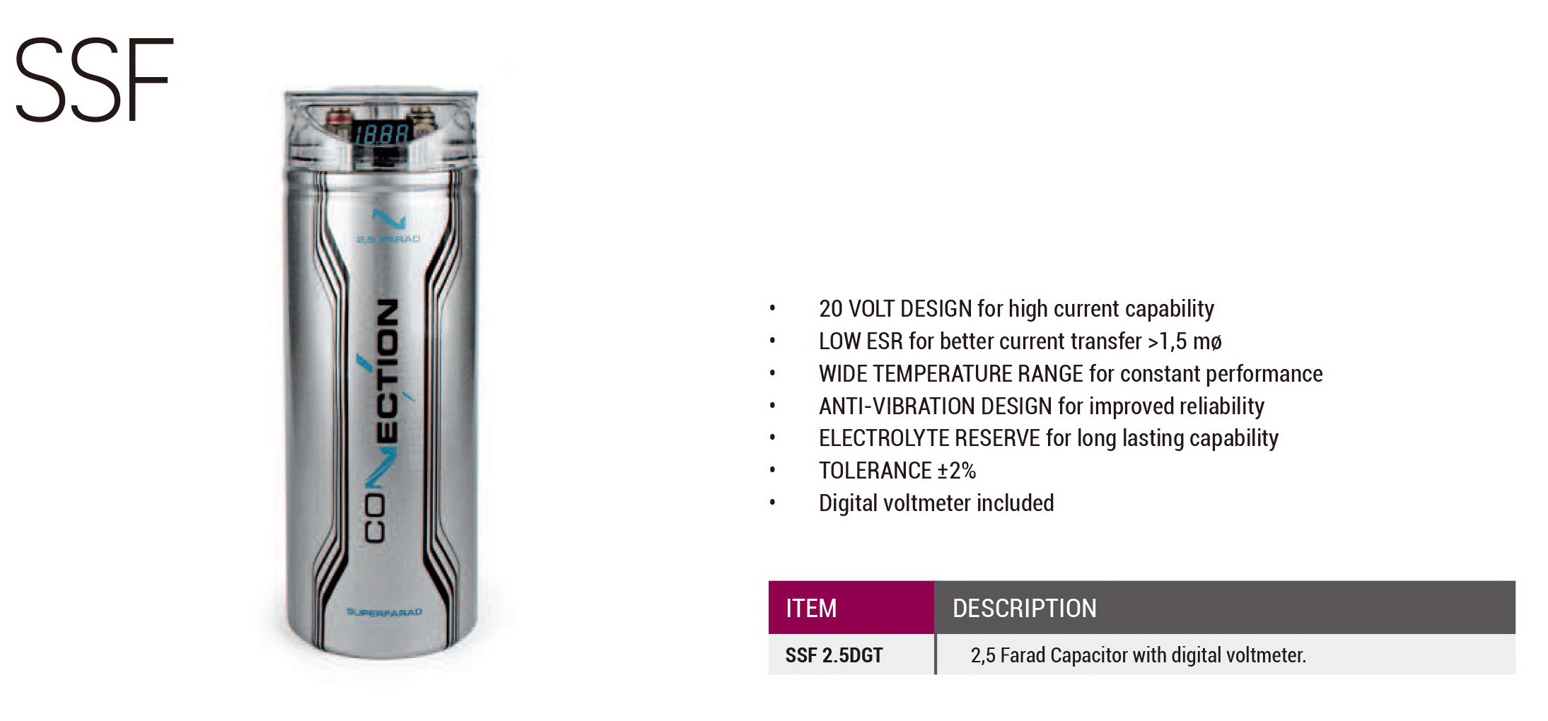 發燒級2.5 Farad法拉汽車音響專用電容,低內阻和公差度只±2%。